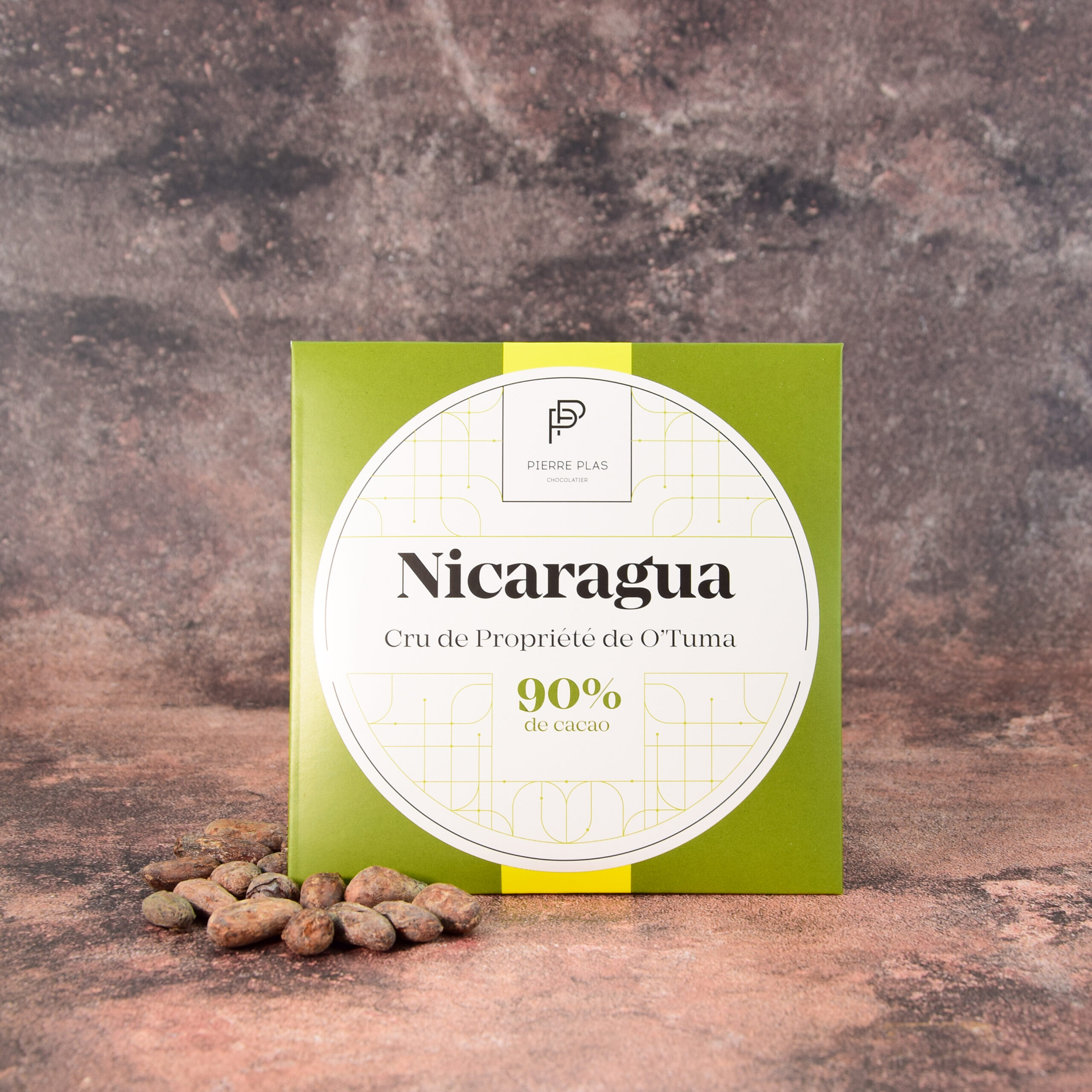 Une tablette au chocolat 90% marquée par des notes puissantes de fruits secs torréfiés, d’épices avec une pointe d’amertume.